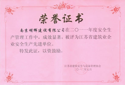 2011年度江苏省建筑业企业安全生产先进单位