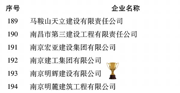2013年,广大施工企业认真学习贯彻党的十八届三中全会精神,坚定信心,锐意改革,涌现出一大批诚信经营、开拓创新、业绩卓著的优秀企业。为表彰先进,树立榜样,弘扬优秀施工企业创新进取、顽强拼搏、奉献社会精神,经关联协会推荐、“全国优秀施工企业”评审委员会审定,安徽蚌埠建筑安装工程集团有限公司等489家企业被评为2013年度全国优秀施工企业。