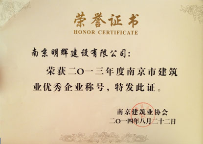 2013年度南京市建筑业优秀企业