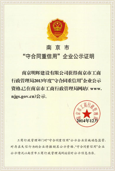 2013年度南京市守合同重信用企业