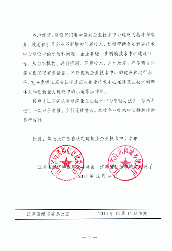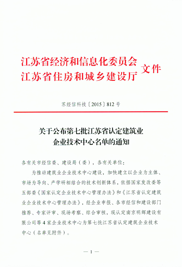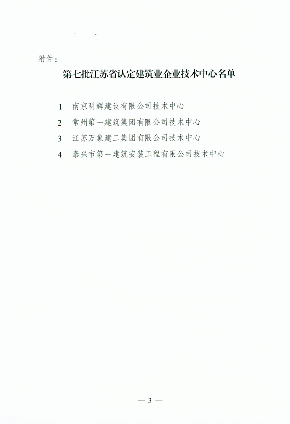 关于公布第七批江苏省认定建筑业企业技术中心名单的通知