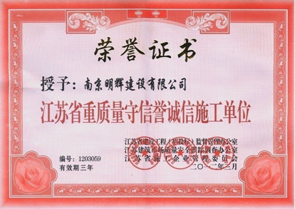 集团企业连续20多年被评为南京市建筑业优秀企业,先后荣获“全国优秀水利企业”“全国优秀施工企业”“中国工程建设企业社会信用评价”AAA“企业”“省建筑百强企业”“省建筑最佳企业”“省建筑业优秀企业”“江苏省重质量守信誉诚信施工单位”、江苏省安全生产先进单位、市水利系统"先进集体"、"AAA"资信单位,获得市级、省级、国家级“守合同重信用企业”等称号。